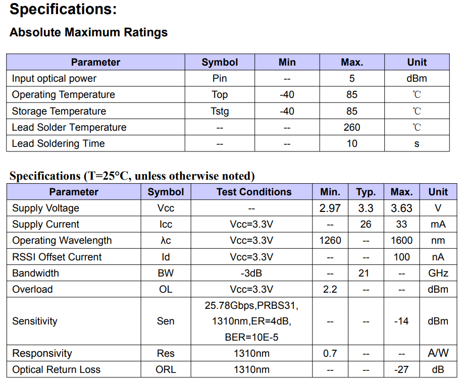 25Gbps 1310nm ROSA-LC with Flex Receiver Optical Subassembly
