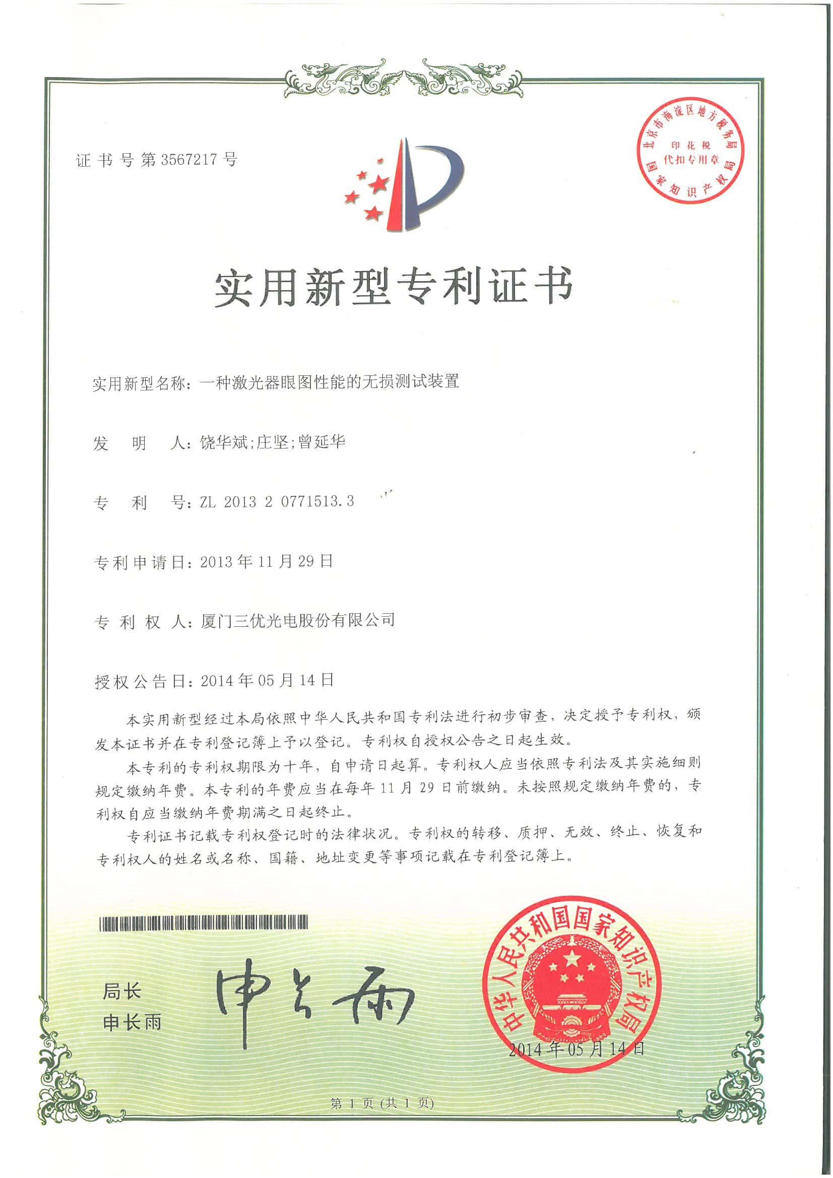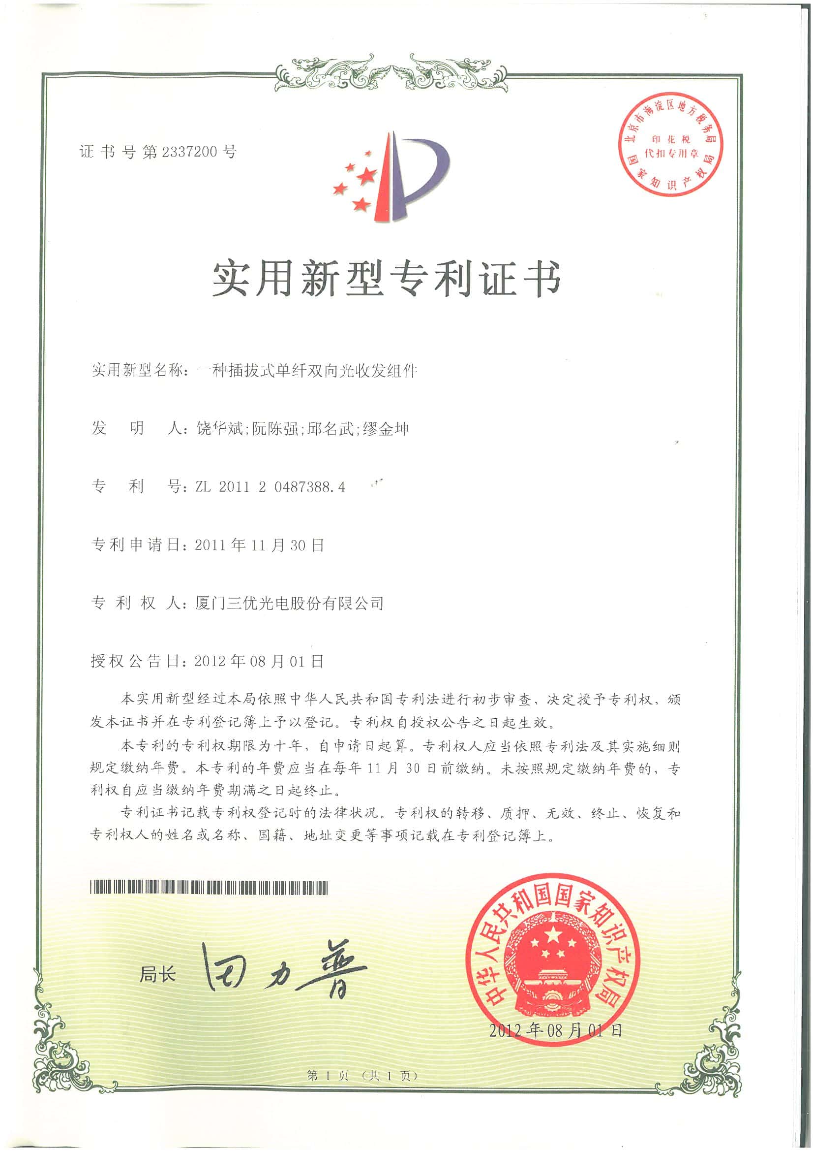 We have16 invention patents and over 40 new utilitypatents.SAN-U's products are laser diode.photodiode TO-CAN packages, and opticalsubassemblies(OSA) which areapplied to FTTHwireless,cable television(CATV)industries.other telecommunications and data communications.