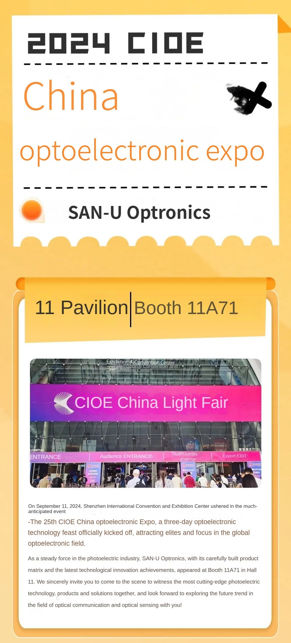 Exhibition Focus | SAN-U Optronics participates in the 2024 Shenzhen CIOE China Optoelectronics Expo