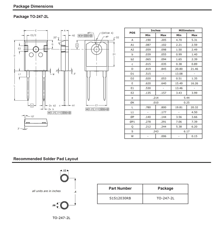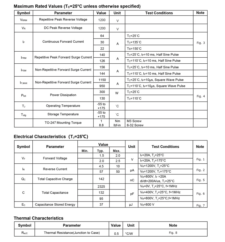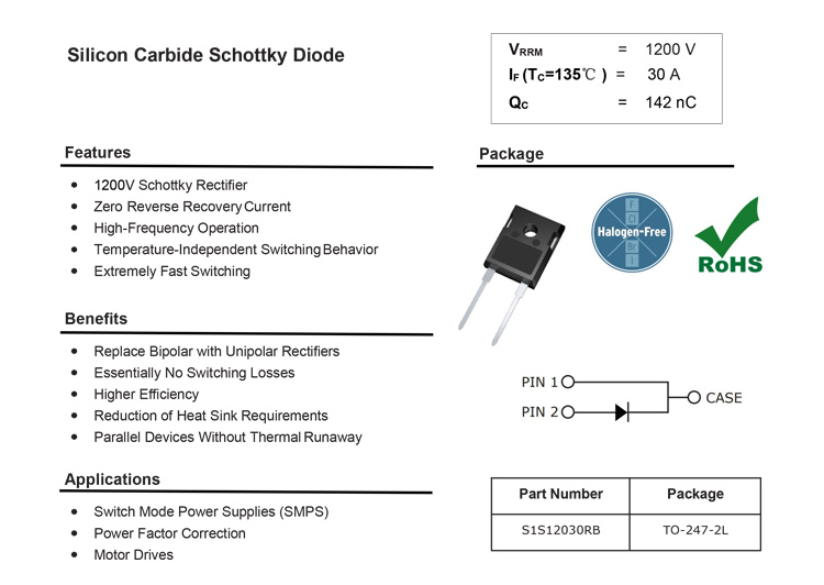 SiC Schottky diode SBD 1200V 2~100A TO247 packaged high-voltage electronic components